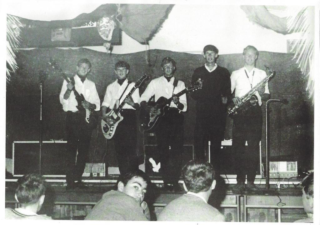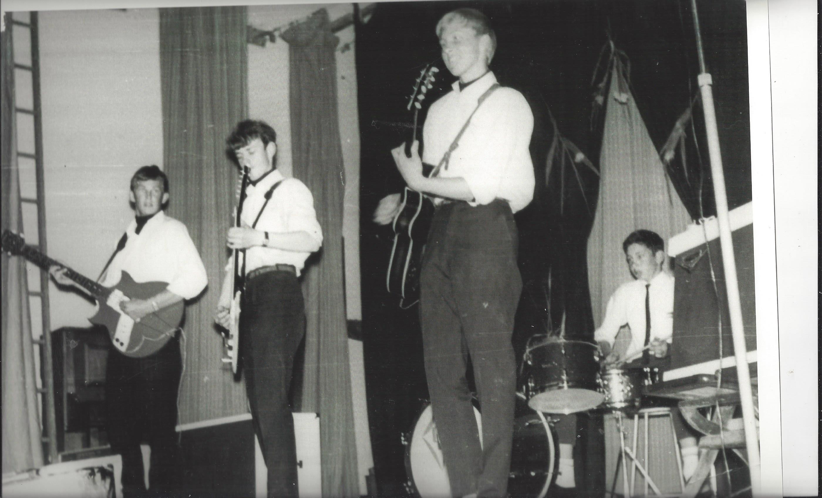 The Avengers got a regular gig playing every second Friday night in a hall at the back of the Anglican Church. Our school mates and other kids used to come along. I remember we were paid 10/- (that’s ten shillings in the old currency), and thought we were on our way! We entered school talent quests, as the Avengers playing instrumentals (see pic), and backing Jock as a solo act. One heat of the talent quest, Jock, with some enthusiastic support from his school mates in 3G and 4G, got the assembly hall full of kids stomping and shouting to “Jailhouse Rock” and “Poison Ivy”. So much so that it brought some plaster down in the principal’s office which was below the hall! The principal labelled it “mass hysteria” and Jock was barred from any more performances.