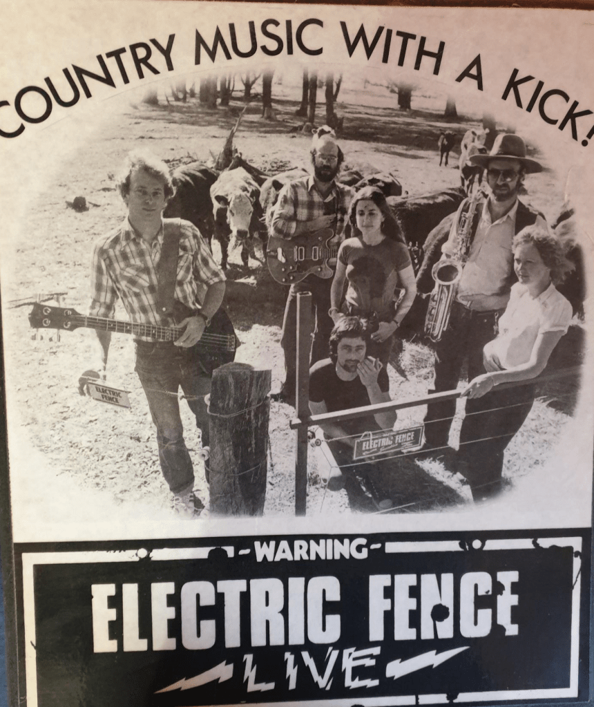 We would promote “Electric Fence” as “a shocking band”. Claire’s stage name was Barb Wire, Linda’s Starr Post. The Fence played covers from country music, including Jerry Jeff Walker, The Band, The Amazing Rhythm Aces, Guy Clarke, and we included old rock ‘n roll covers too from people like Conway Twitty, Elvis and The Everly Brothers. We had a fortnightly gig at a local pub (The Union) on a Friday night and it became quite popular. The Fence thrived for a few years but eventually broke up after a few practice sessions dominated by some arguments about what and how we should be playing. We all remained friends nonetheless. The Fence had probably just run out of power. Along the way Linda and I had formed a relationship and we married in 1982!